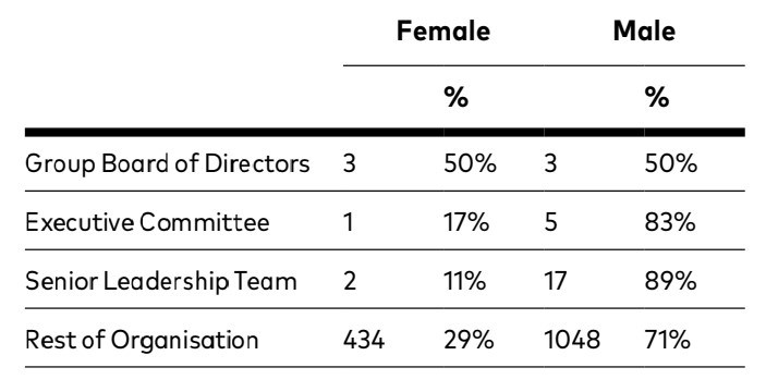 The Board continues to monitor progress on equality and the Group’s gender breakdown at the end of 2024 can be seen in the table below.