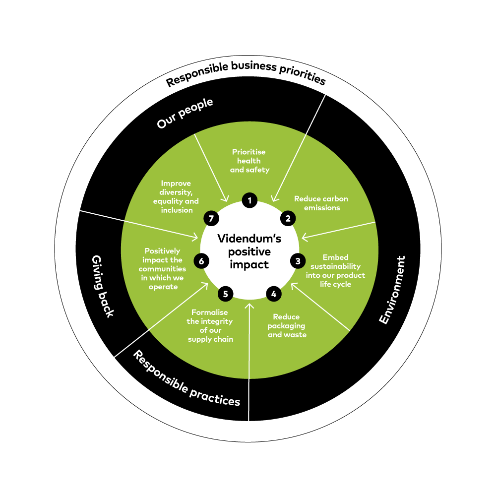 Videndum has seven responsible business priorities grouped under four specific areas which reflect how the business operates. These priorities are embedded in our day-to-day operations.